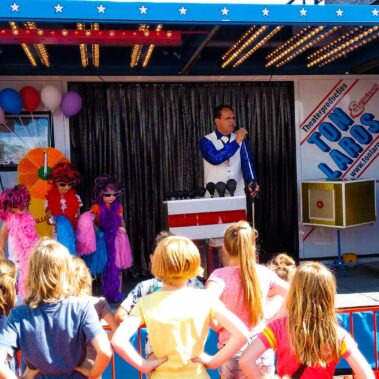 Bent u op zoek naar een onvergetelijke kindervoorstelling voor uw feest of evenement? Zoek niet verder! De kindershows van Ton Laros zijn unieke kindervoorstellingen, gebracht door een artiest met ruim 40 jaar ervaring. Ton Laros presenteert kindershows voor kinderen in de leeftijd van 4 t/m 12 jaar (basisschoolleeftijd) waar de spetters vanaf vliegen. Eigentijdse kindervoorstellingen waarbij alle kinderen, jong en oud, gedurende de gehele show interactief betrokken worden bij een variëteit aan nummers. Binnen zijn kindershows is Ton Laros goochelaar, muzikant, quizmaster, buikspreker, en nog veel meer. Kortom, een echt gangmaker! Iedereen zal zich kostelijk vermaken. Zelfs de meegekomen volwassenen beleven er veel lol aan.